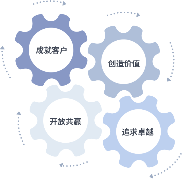 成就客户是一切决策的出发点,创造价值是衡量所有工作的标准,追求卓越是k8凯发做事做人的态度,开放共赢是k8凯发的格局也是最终的结果。价值观的齿轮环环相扣,推动着组织里的每个人不断向前。